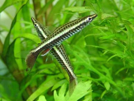 Размер до 10 см. Обитает в бассейне реки Конго. Самец крупнее самки, верхний плавник у него вытянут в косицу, в середине хвостового плавника имеется вырост. Рыба неприхотлива в содержании и кормлении. Любит яркий свет. Вода для содержания: GН до 15°; pH 6,5-7,5; t 21-24° С.